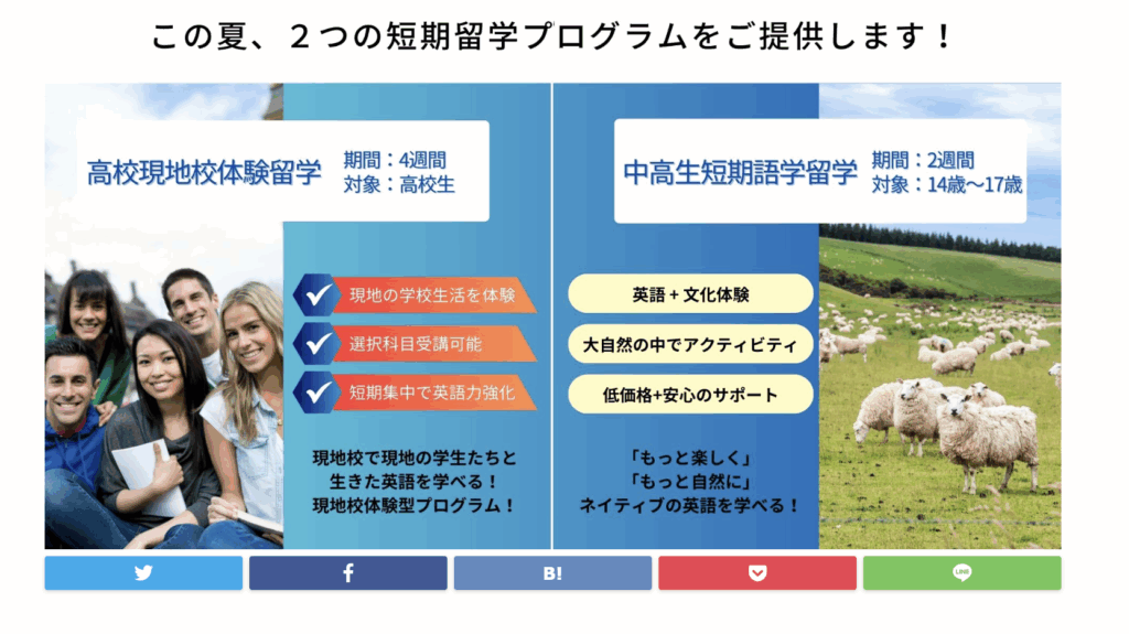 夏休みや春休みなどの長期休暇を利用して、実際に現地の先生と英語漬けの生活を体験できる短期留学プログラムは、子どもたちにとって英語学習の大きなモチベーションになります。